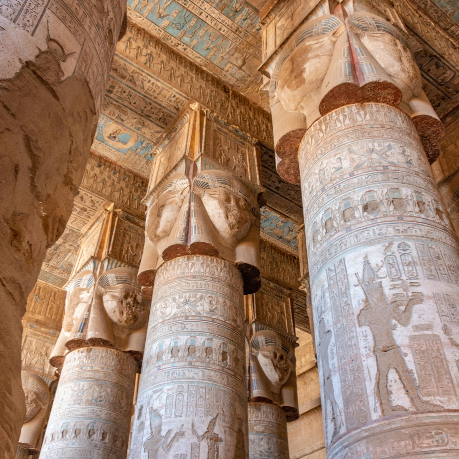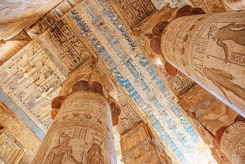 Explore the Temple of Hathor, famous for its astronomical ceiling, zodiac carvings, crypts, and colorful reliefs that bring ancient rituals to life.